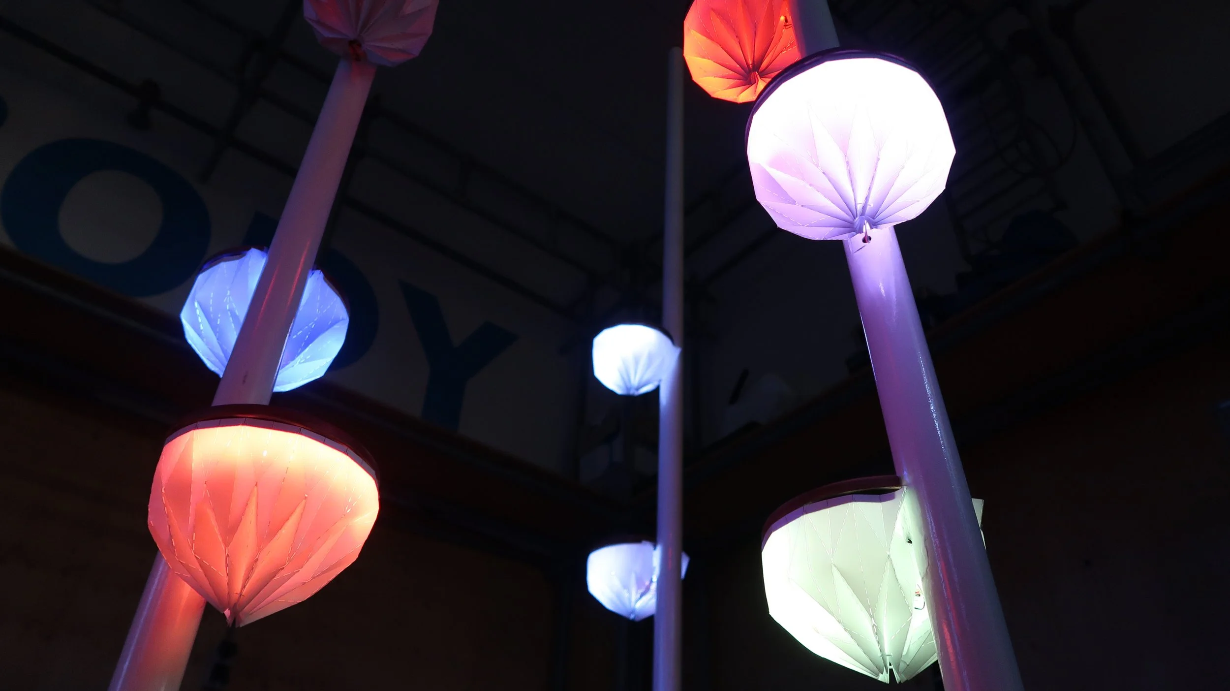 In the development phase, I folded paper to generate ideas on the step caps to encase our Arduinos and wiring. From there, I began to laser cut plastic sheets to determine the best pattern for our origami bulb cover.